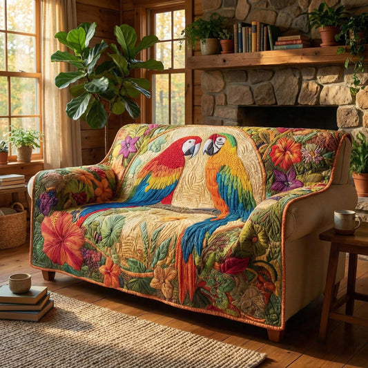 Tropical Parrots Quilted Sofa Cover GFTOQM1598