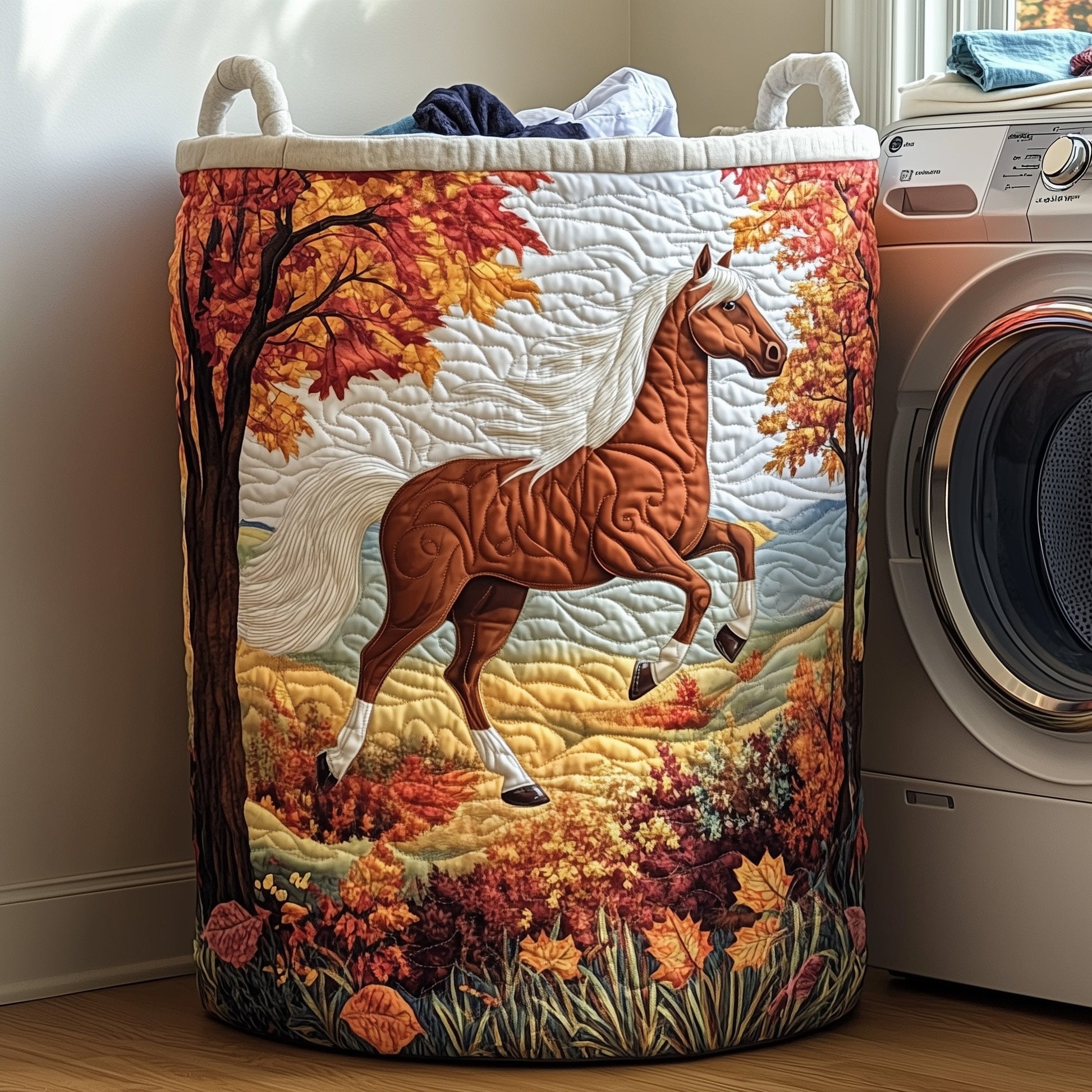 Autumn Horse Gallop Quilted Laundry Basket GFTOHD10041