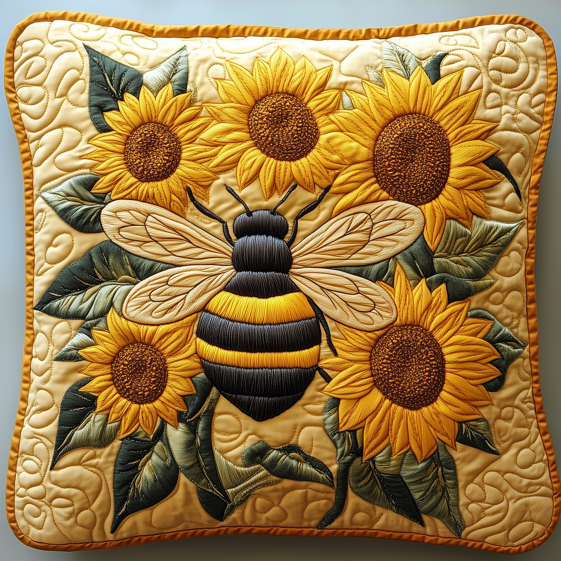 Bee Sunflower Quilted Pillow Case GFTOTL435