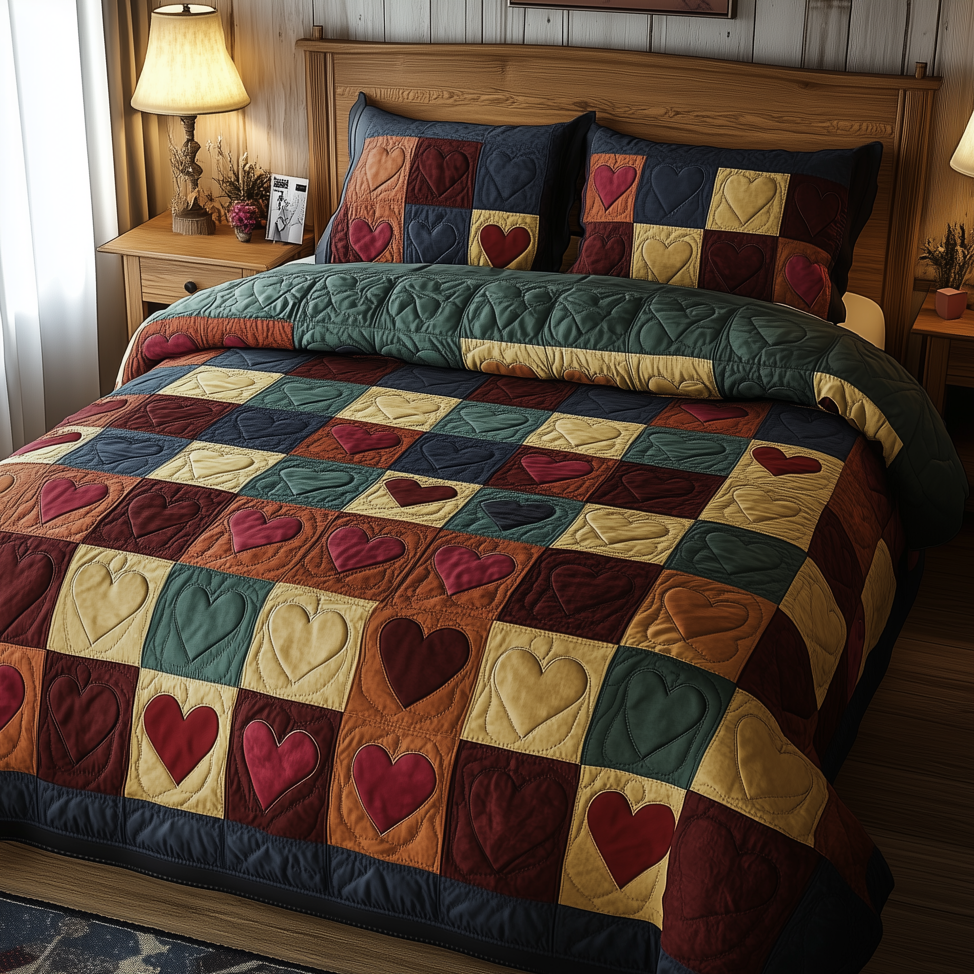 Burgundy Heart Shape 3-Piece Quilted Bedding Set GFTOHD442