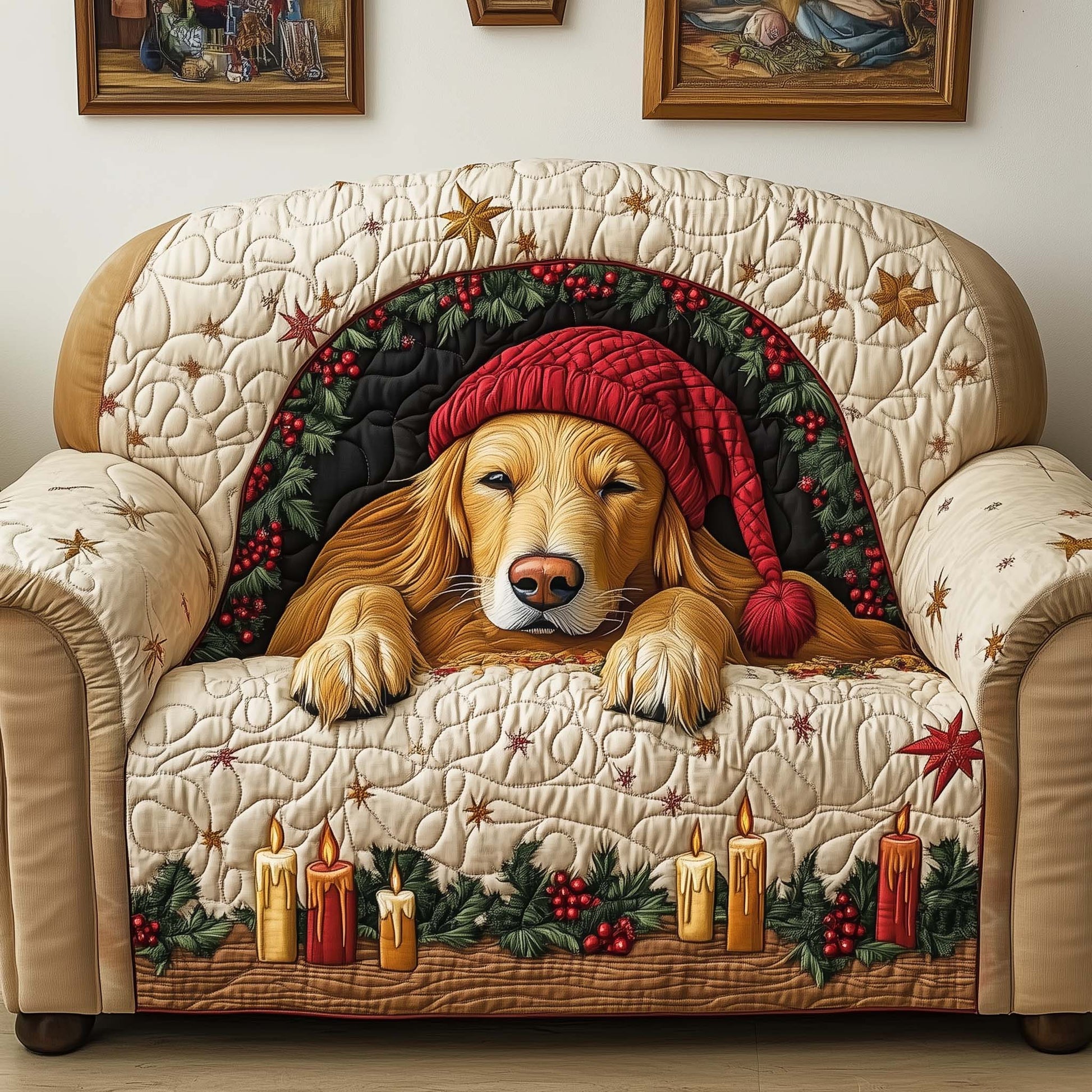 Candle Golden Quilted Sofa Cover GFTOQM1069