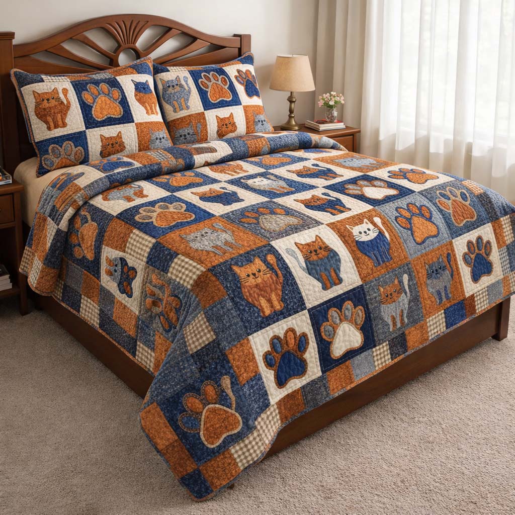 Cat Serenity 3-Piece Quilted Bedding Set GFTOQA1961