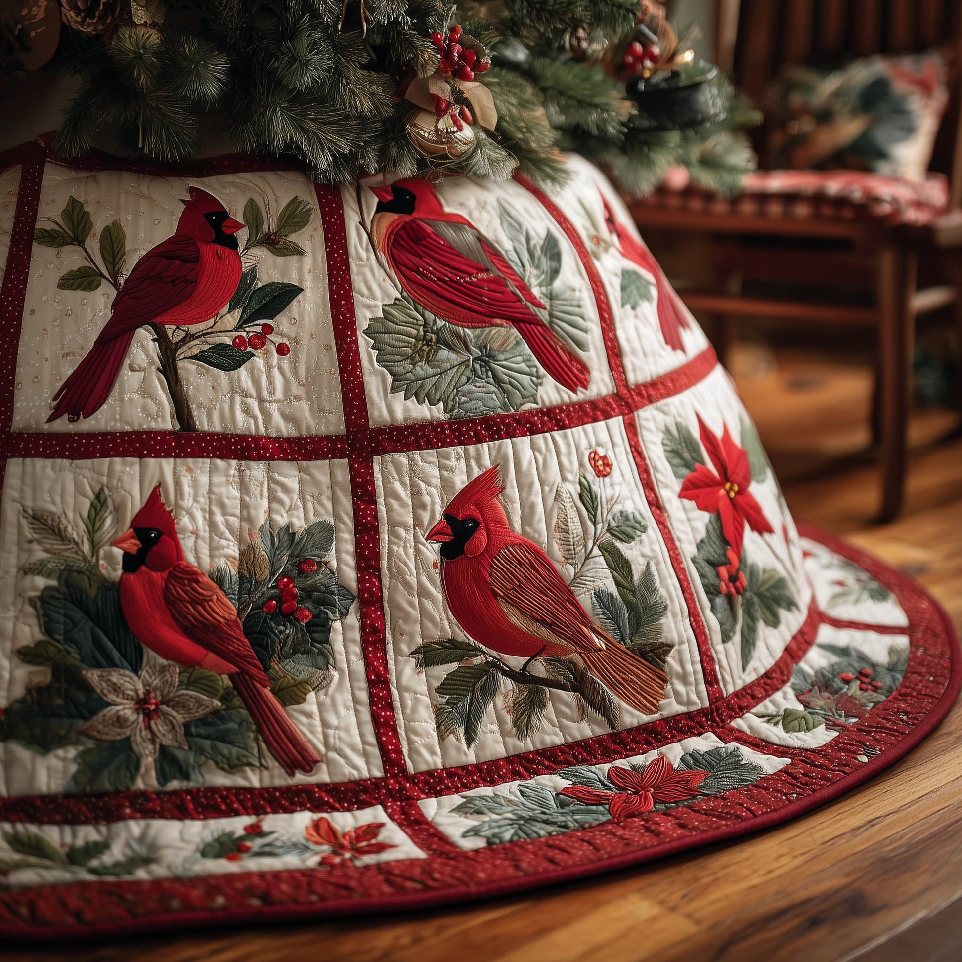 Charming Cardinal Quilted Tree Skirt GFTONT5541