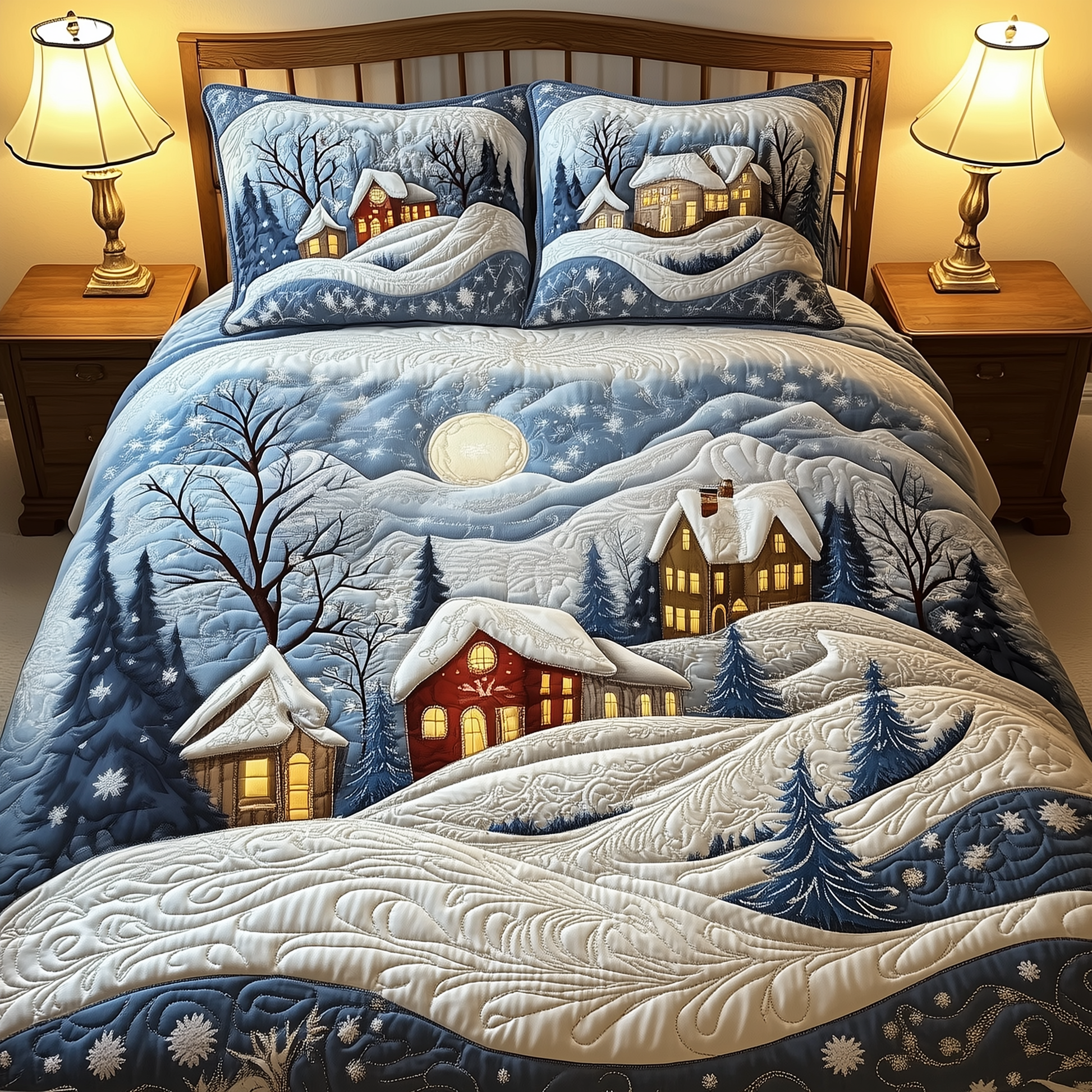 Christmas Village 3-Piece Quilted Bedding Set GFTOTP738