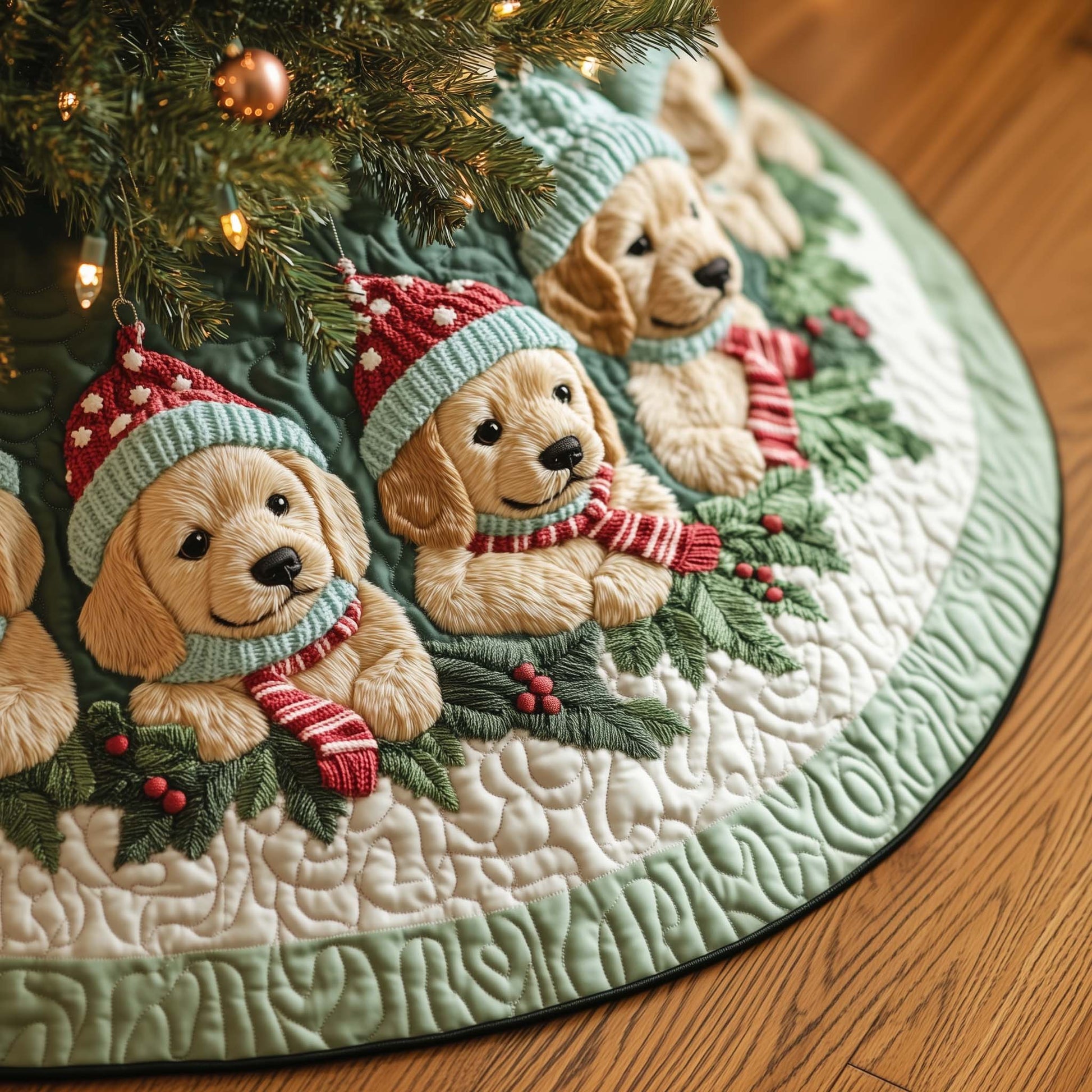 Cozy Puppy Quilted Tree Skirt GFTOQA241