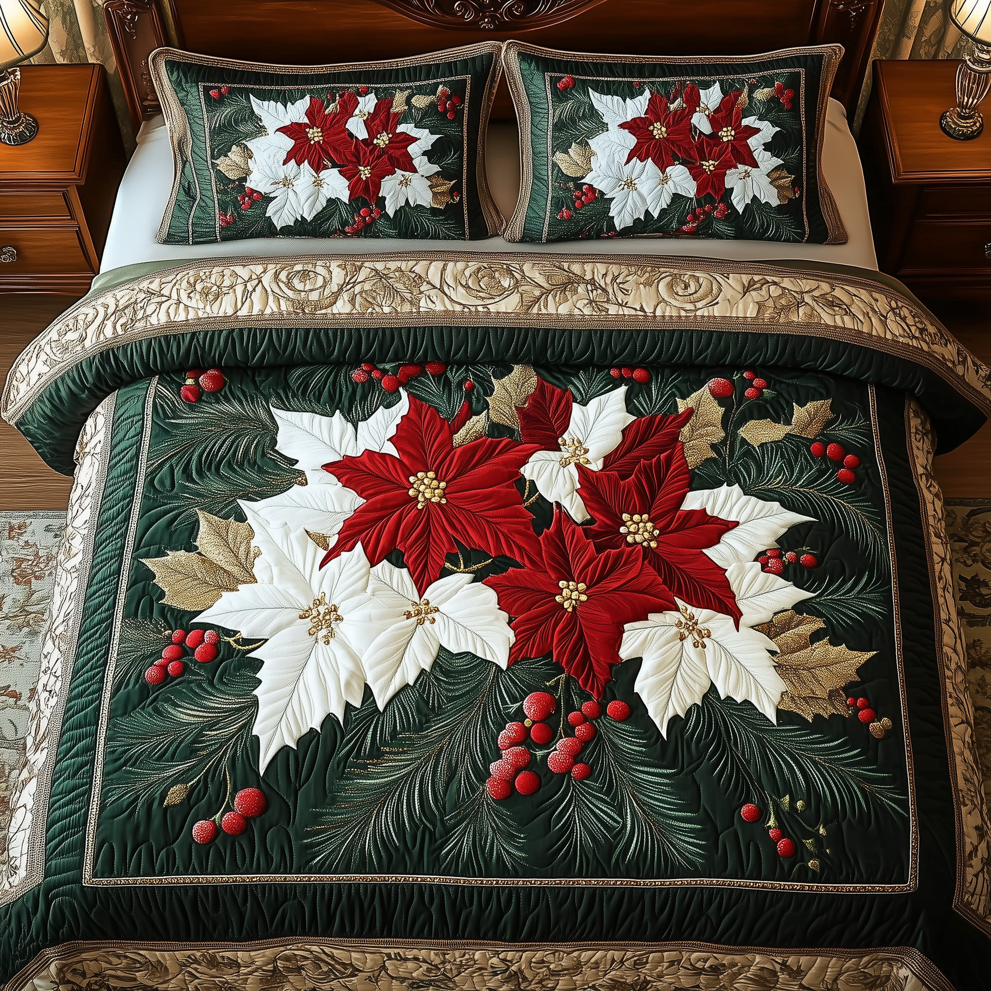 Elegant Poinsettias 3-Piece Quilted Bedding Set GFTOTP1120