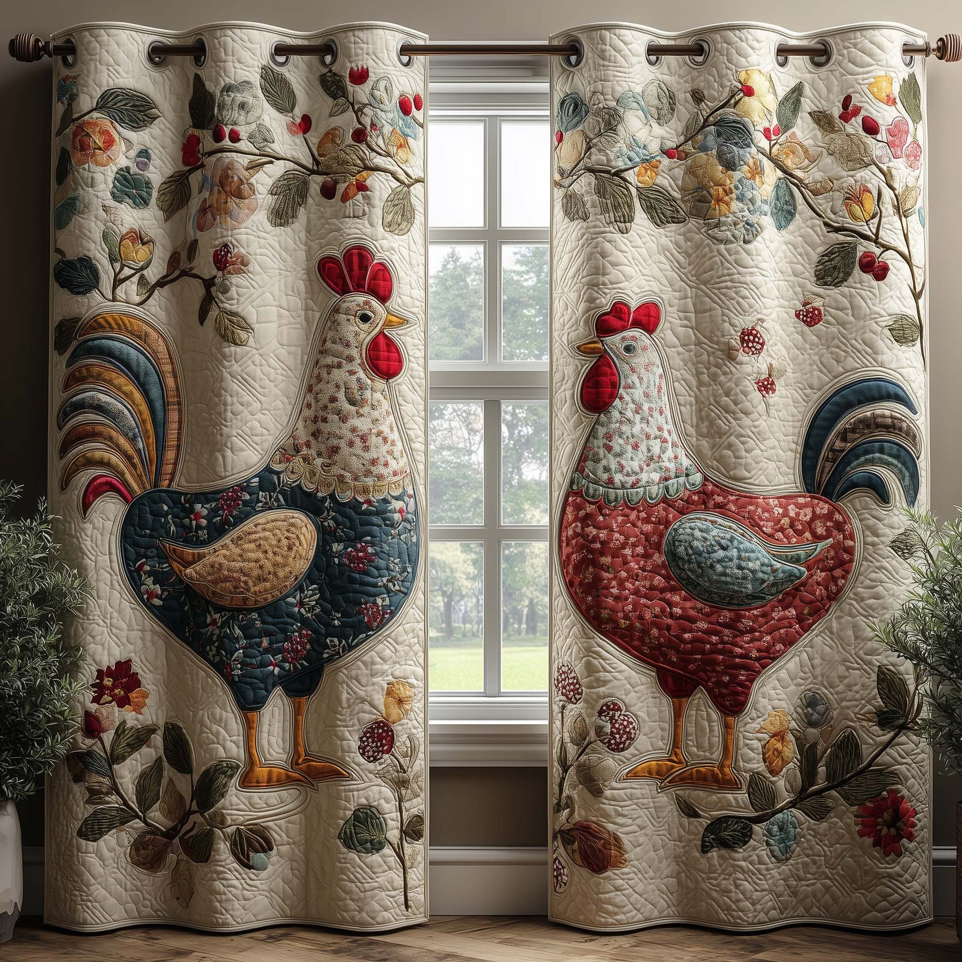 Folk Chicken Quilted Curtains GFTOQM3022