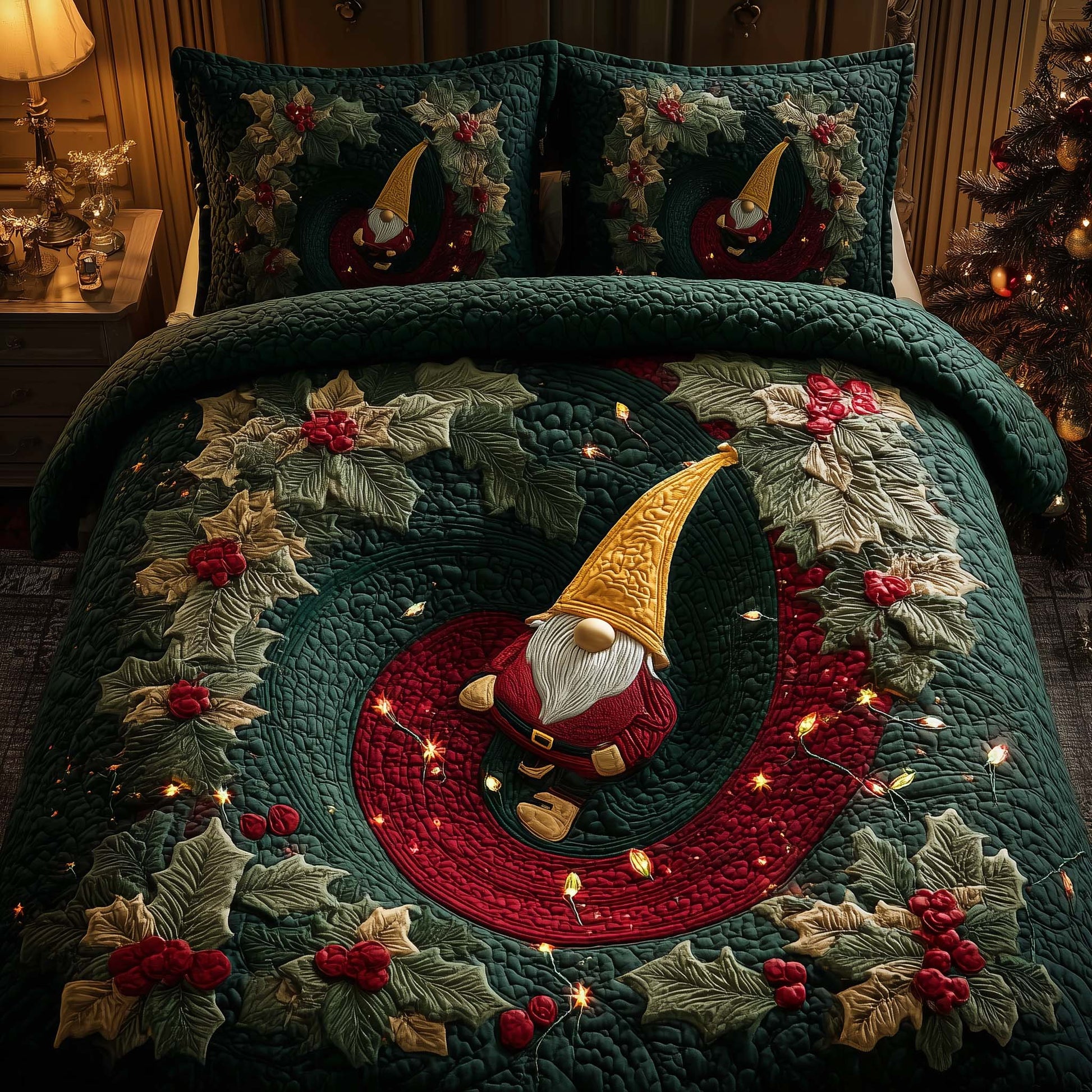 Holly Gnome 3-Piece Quilted Bedding Set GFTOQM611