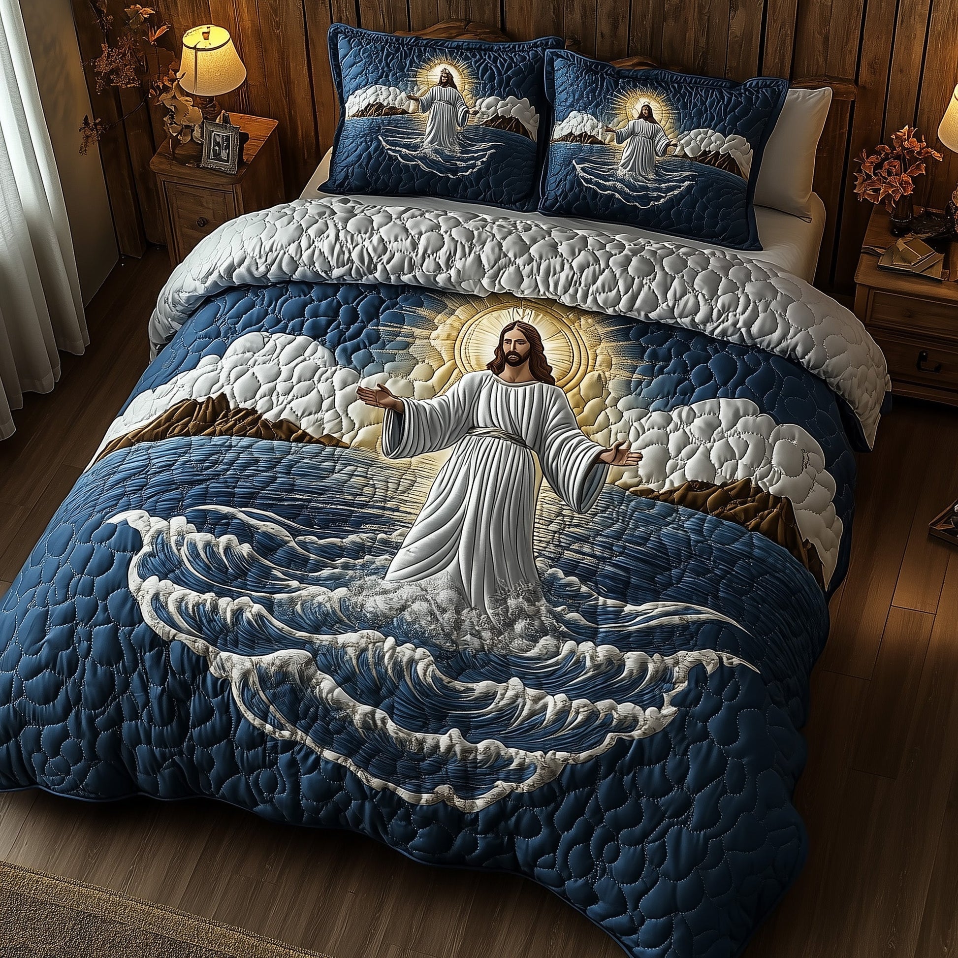Jesus Walking On Water 3-Piece Quilted Bedding Set GFTOHD4796