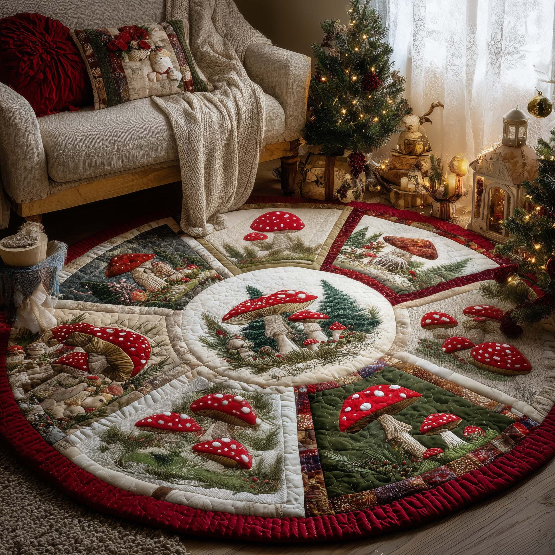Mushroom Patch Quilted Round Mat GFTOQA157