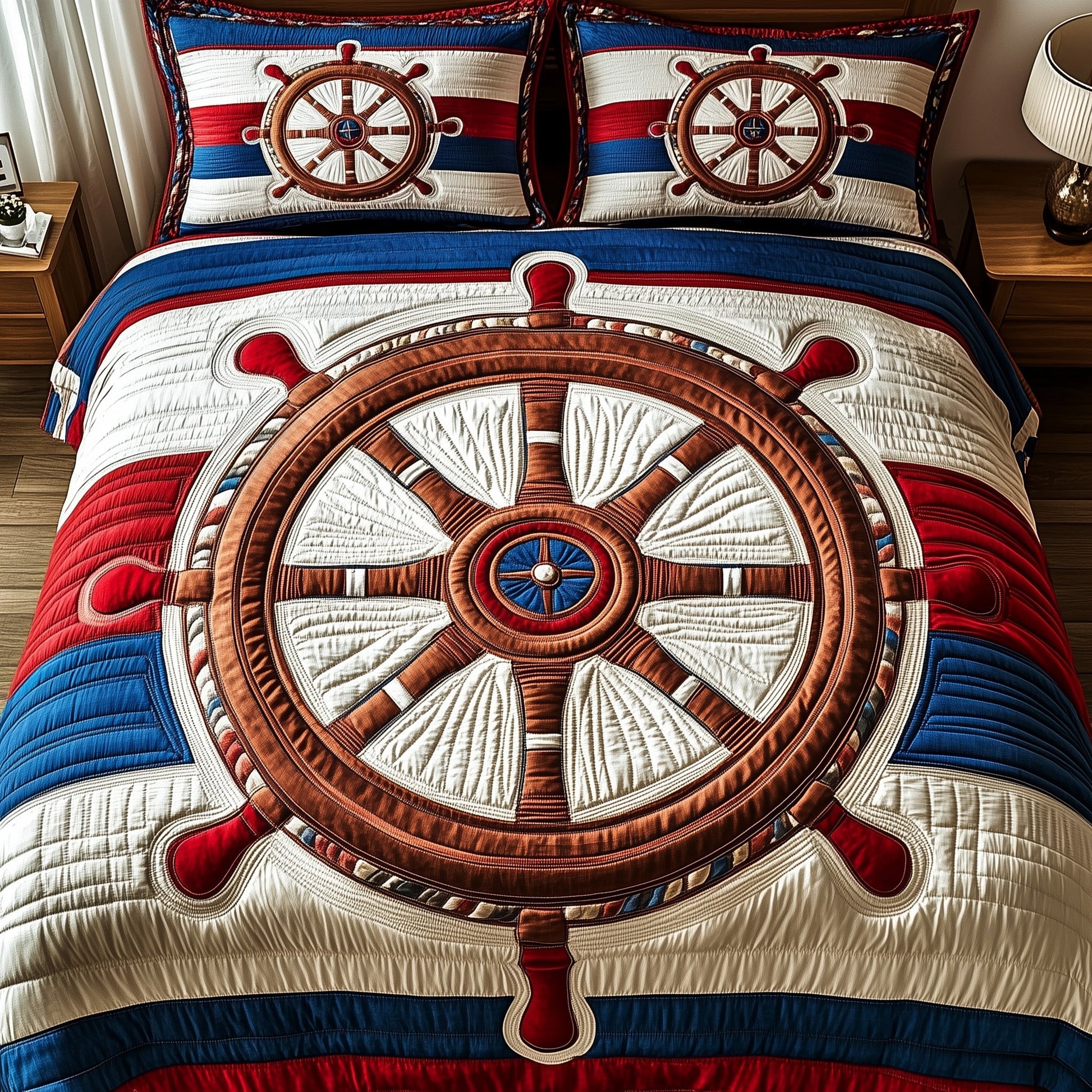 Nautical Ship Wheel 3-Piece Quilted Bedding Set GFTOTP4645