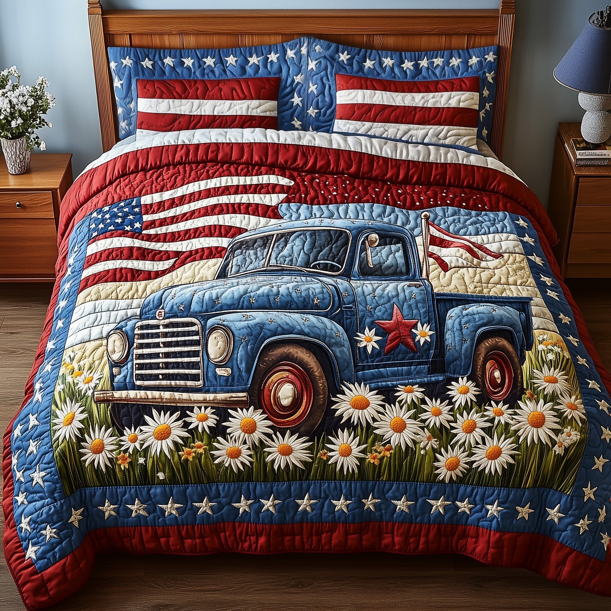 Patriotic America Truck 3-Piece Quilted Bedding Set GFTONL2797