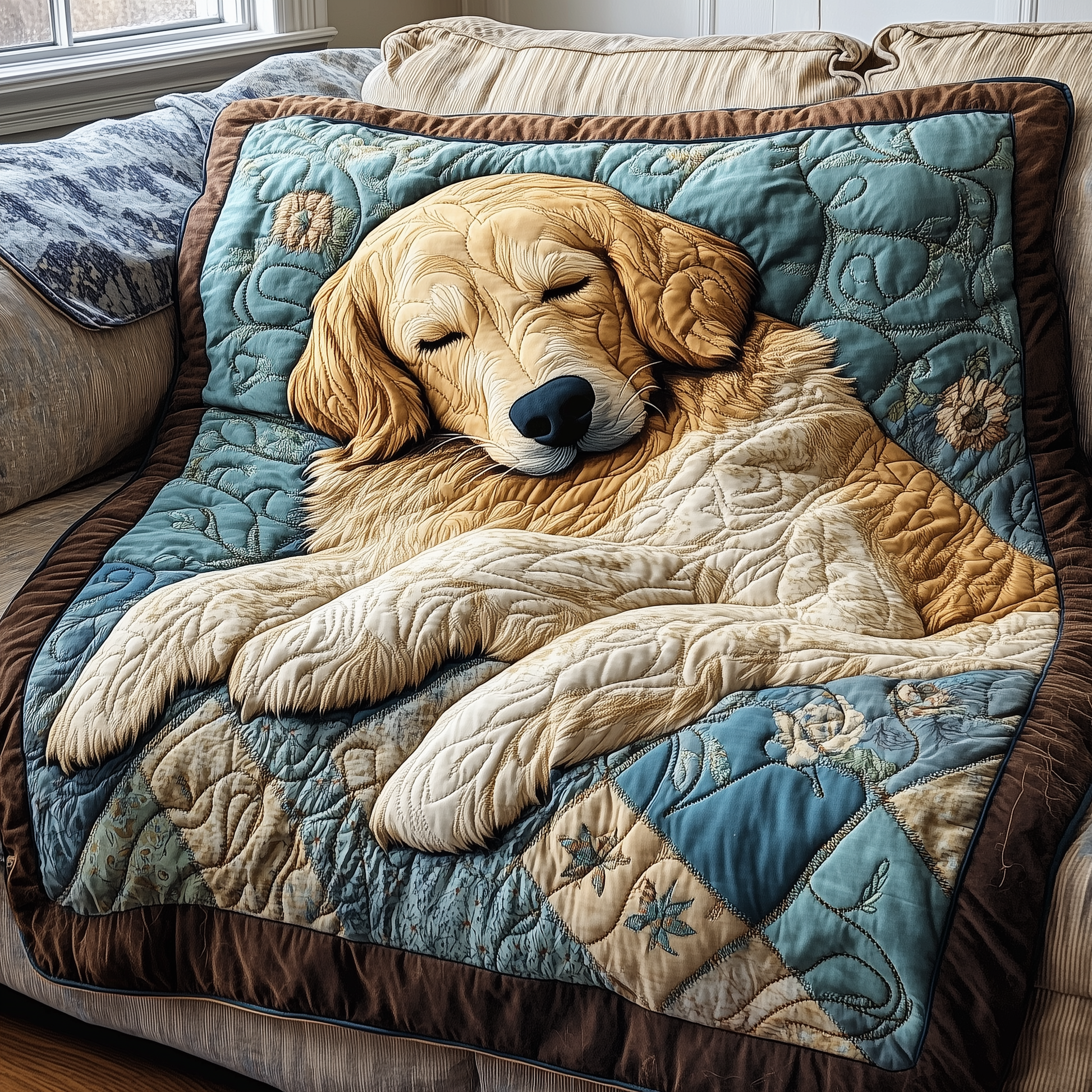Peaceful Sleepy Golden Retriever Quilted Blanket GFTOTP2563
