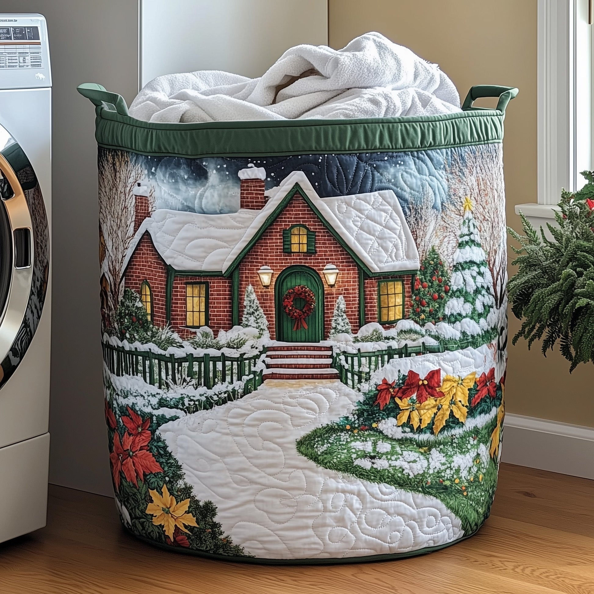 Peaceful Snow Cabin Quilted Laundry Basket GFTOHD10330