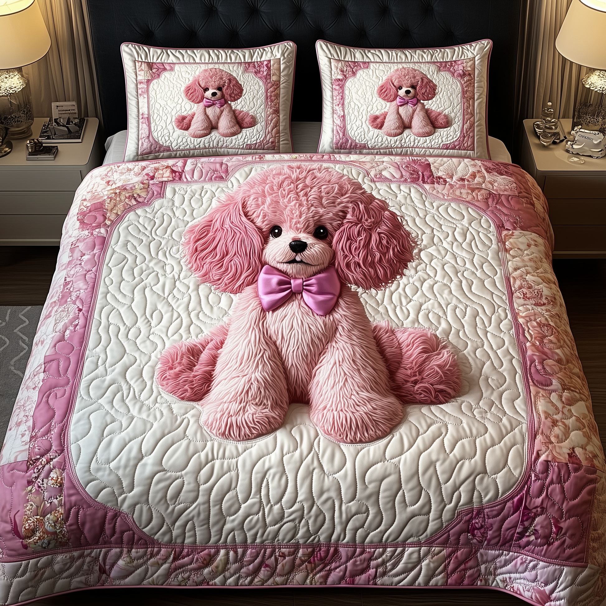 Pinky Adorable Poodle 3-Piece Quilted Bedding Set GFTOTP513