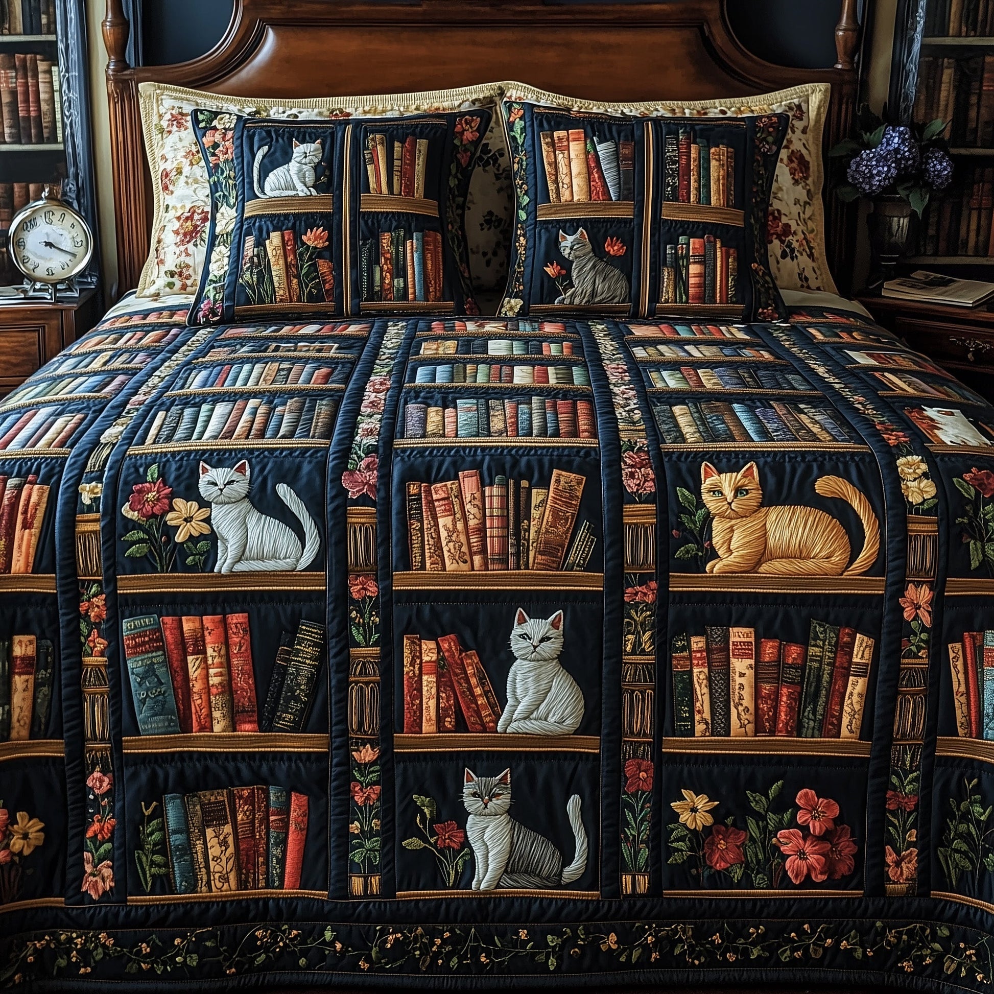 Purrfect Library Retreat 3-Piece Quilted Bedding Set GFTOTP5877