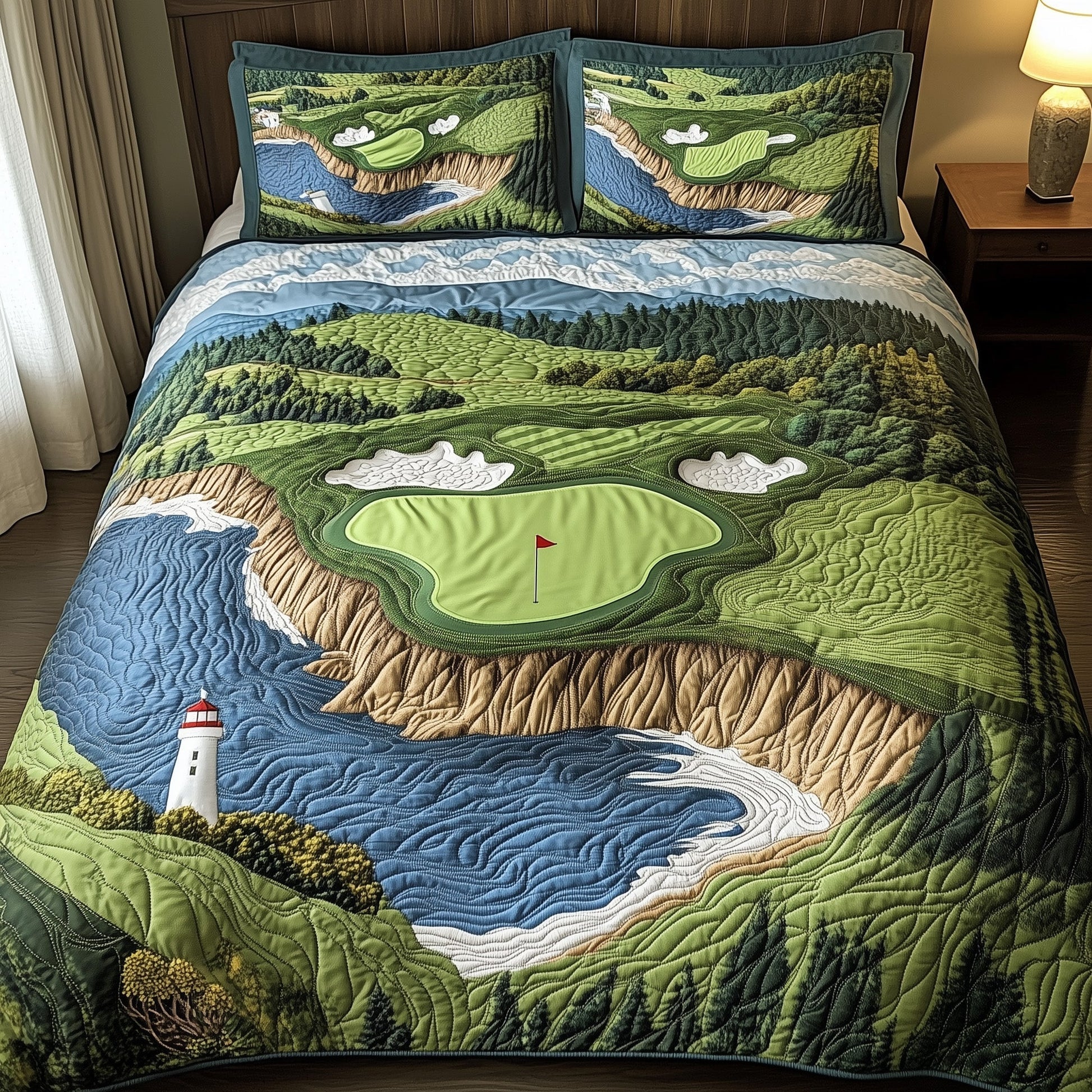 Seaside Fairway Dreams 3-Piece Quilted Bedding Set GFTOHD7383