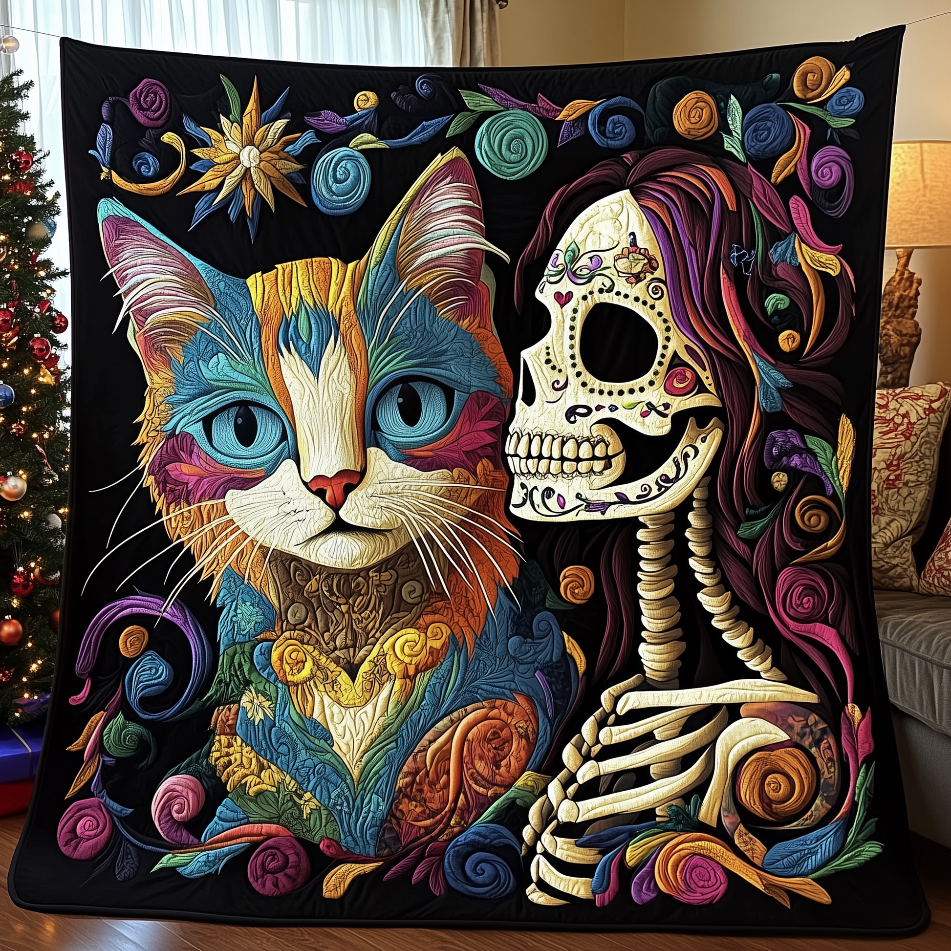 Skull Cat Mom Quilted Blanket GFTOTP492