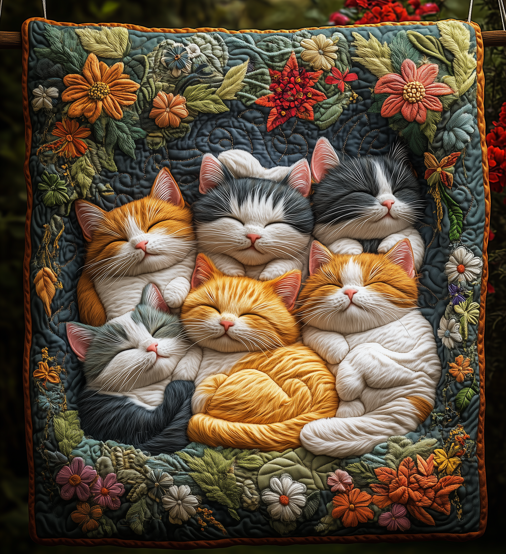 Sleeping Cats Royal Blooms And Leaves Quilted Blanket NNKL015