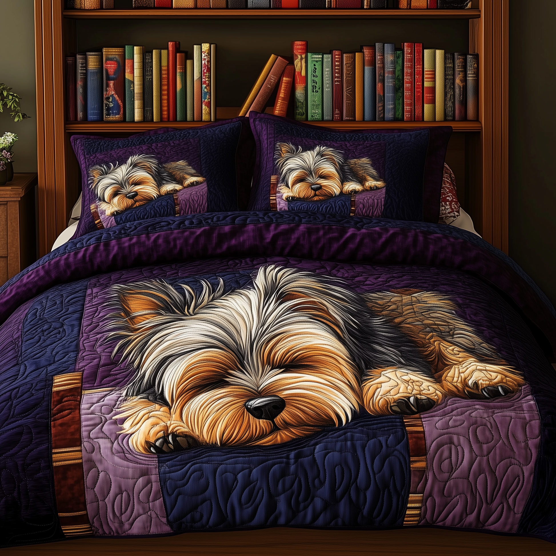 Sleeping Yorkie 3-Piece Quilted Bedding Set GFTOAB266