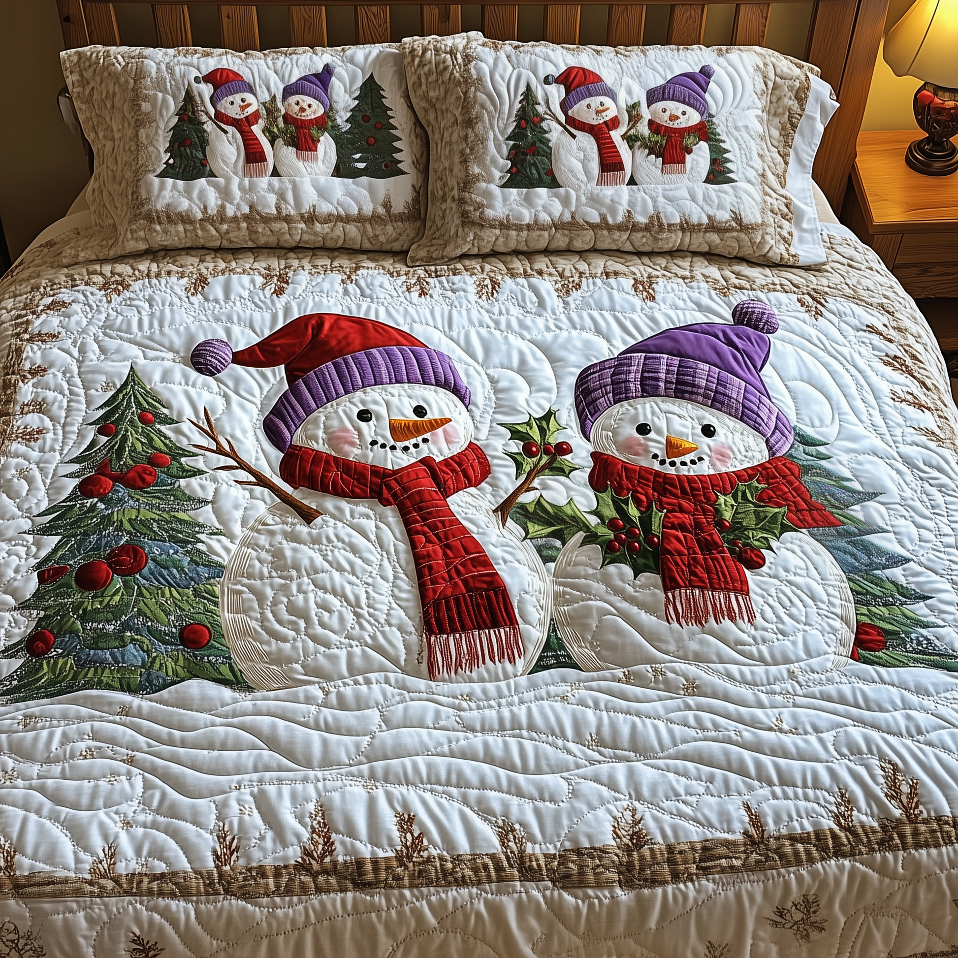 Snowman Couple 3-Piece Quilted Bedding Set GFTOAB728