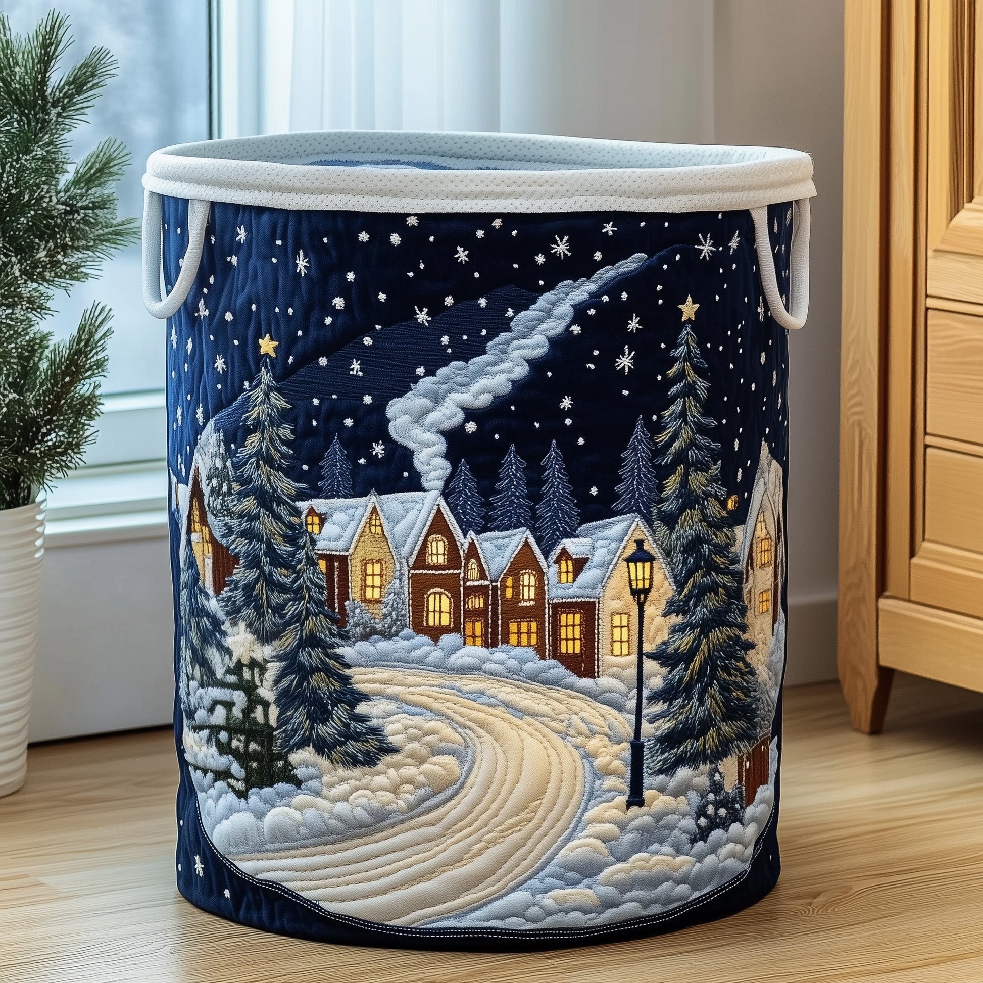 Snowy Cottage Quilted Laundry Basket GFTONT3356