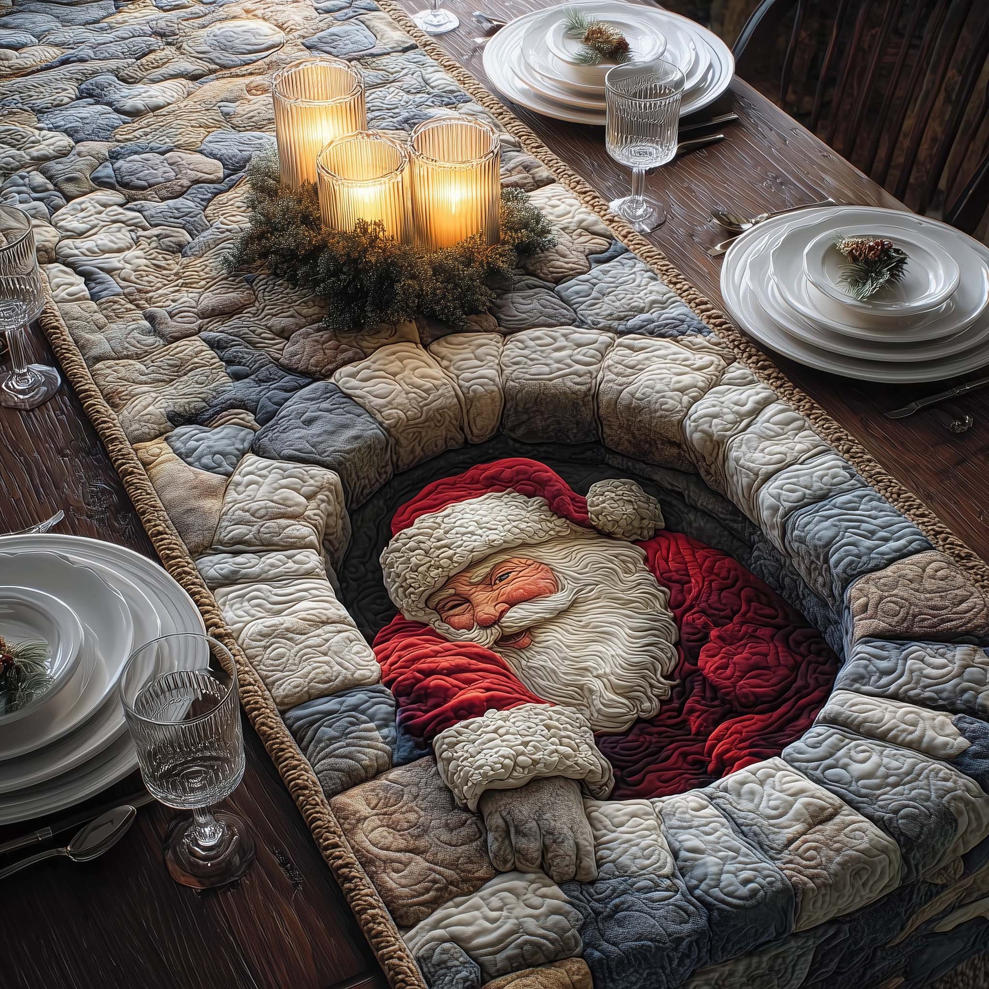 Stone Well Santa Quilted Table Runner GFTOQM630