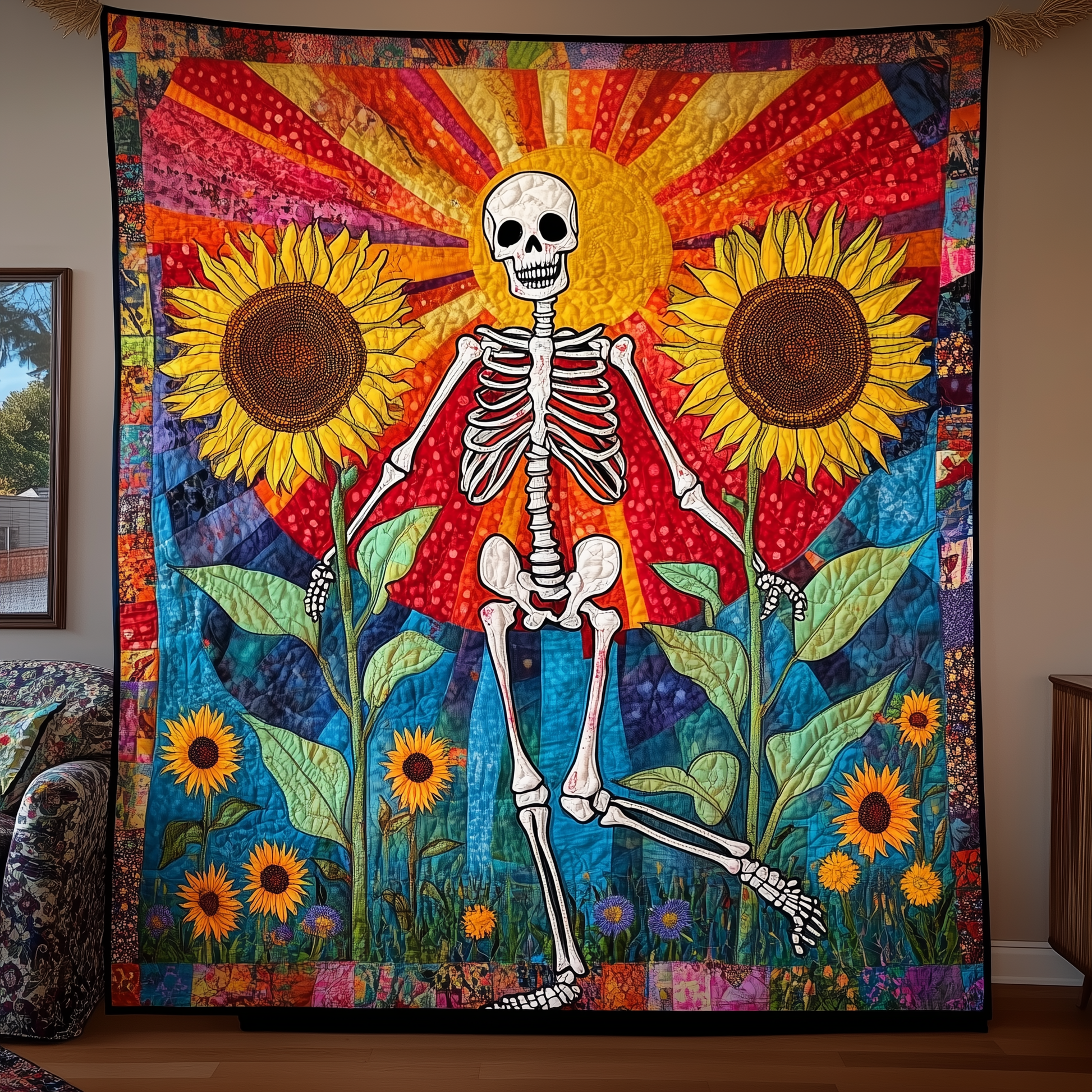 Sunflower Dancing Skeleton Quilted Blanket GFTOHD805