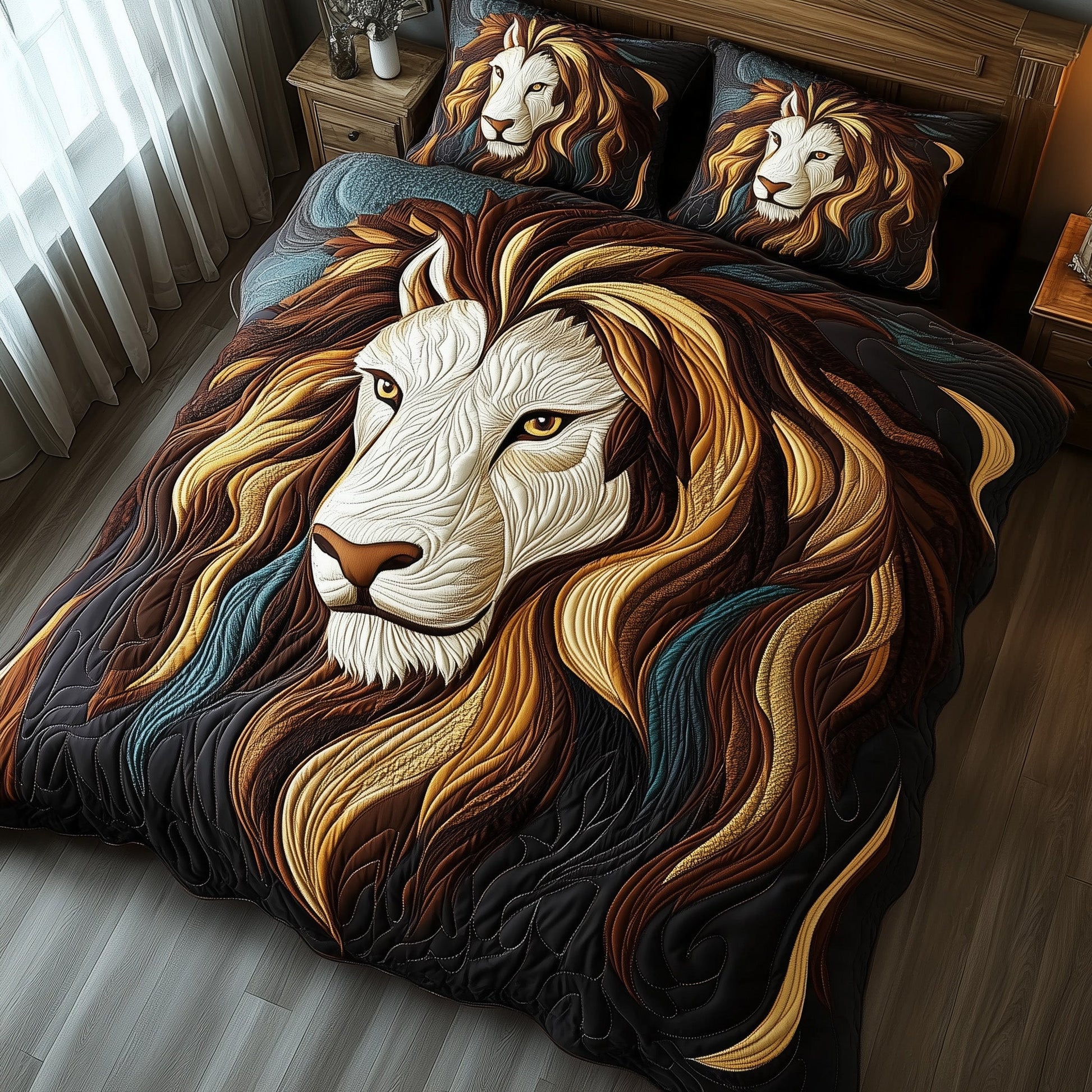 Vintage Majestic Lion 3-Piece Quilted Bedding Set GFTOHD3473